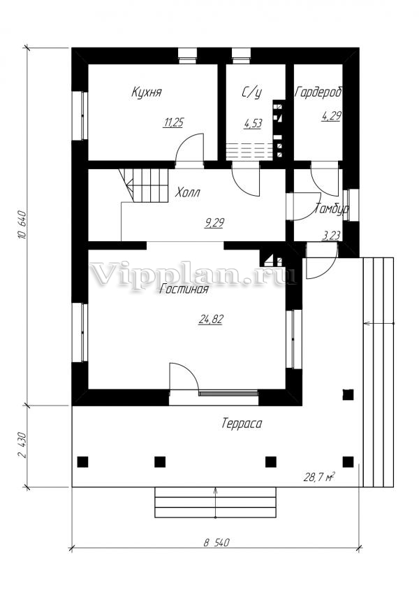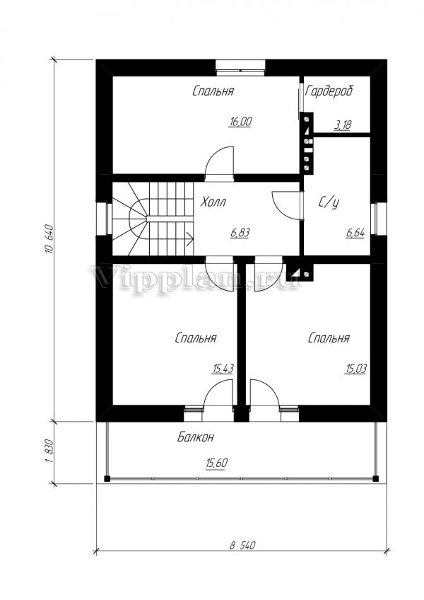 | Размеры дома: | 8.54м×10.64м |