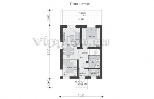| Размеры дома: | 13.3м×7.22м |