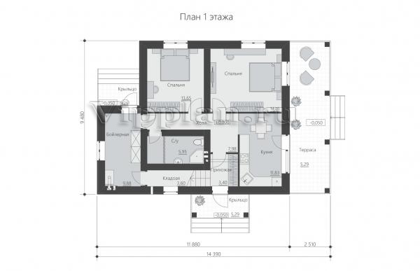 | Размеры дома: | 14.39м×9.48м |