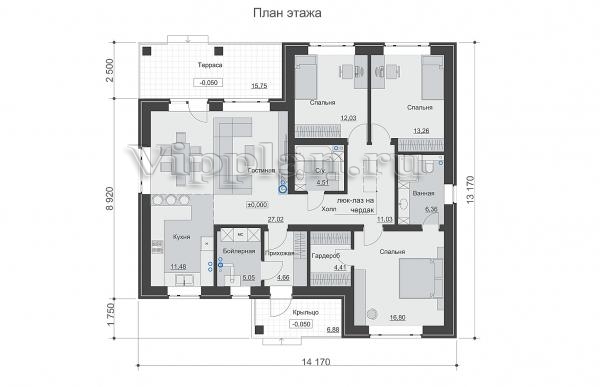 | Размеры дома: | 13.17м×14.17м |